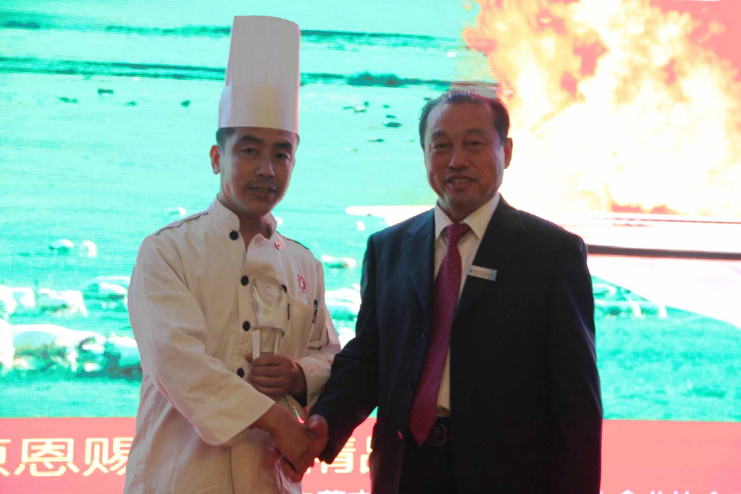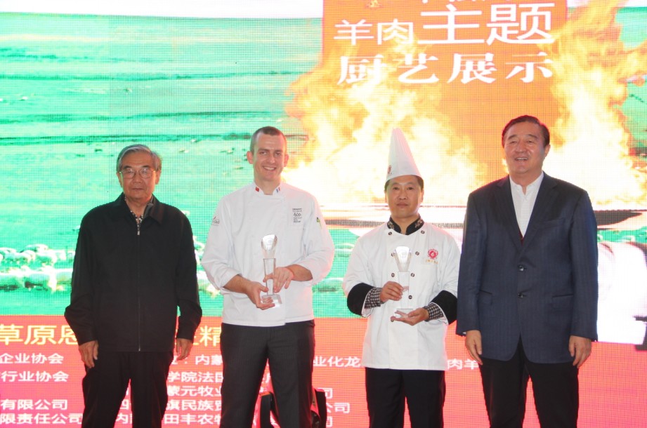 本次廚藝比拼展示主要是中法兩國廚師之間的高手對決。兩國大廚根據(jù)羊肉的不同部位烹飪出各道菜品。本次比拼的標準主要是養(yǎng)生、創(chuàng)意和具有地域特色。各評委經過仔細品嘗后評選出特等獎、一等獎各一名。最終由遠道而來的法國大廚獲得特等獎,我們中國廚師隊獲得一等獎。原副主任雷·額爾德尼和原副主席傅守正為獲獎選手頒發(fā)獎杯。