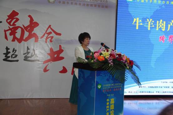農(nóng)牧業(yè)廳產(chǎn)業(yè)化處副處長(zhǎng)郟金梅在牛羊肉產(chǎn)業(yè)發(fā)展高峰論壇上作講座