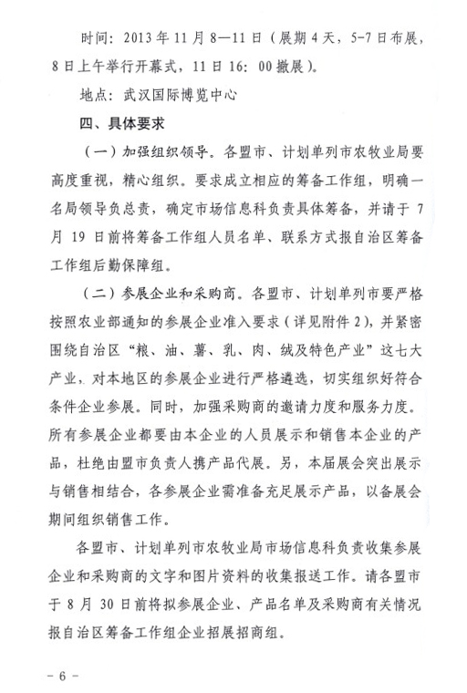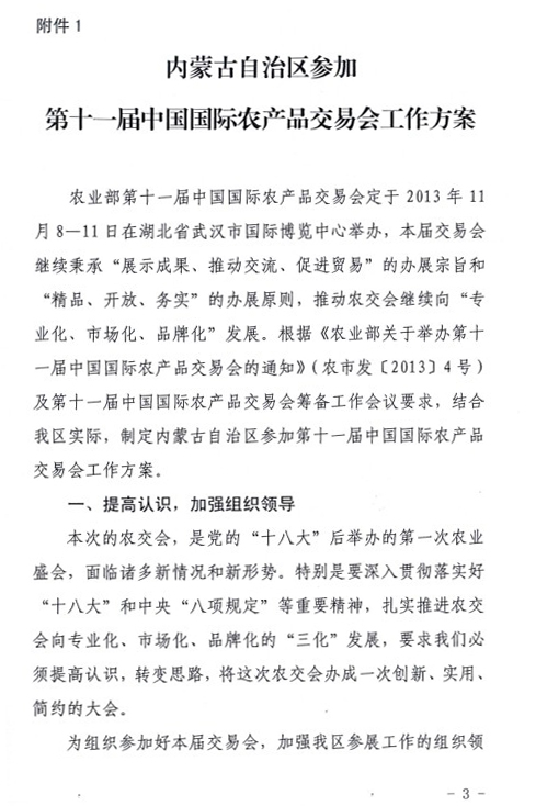 關于印發(fā)內(nèi)蒙古自治區(qū)參加第十一屆中國國際農(nóng)產(chǎn)品交易會工作方案的通知