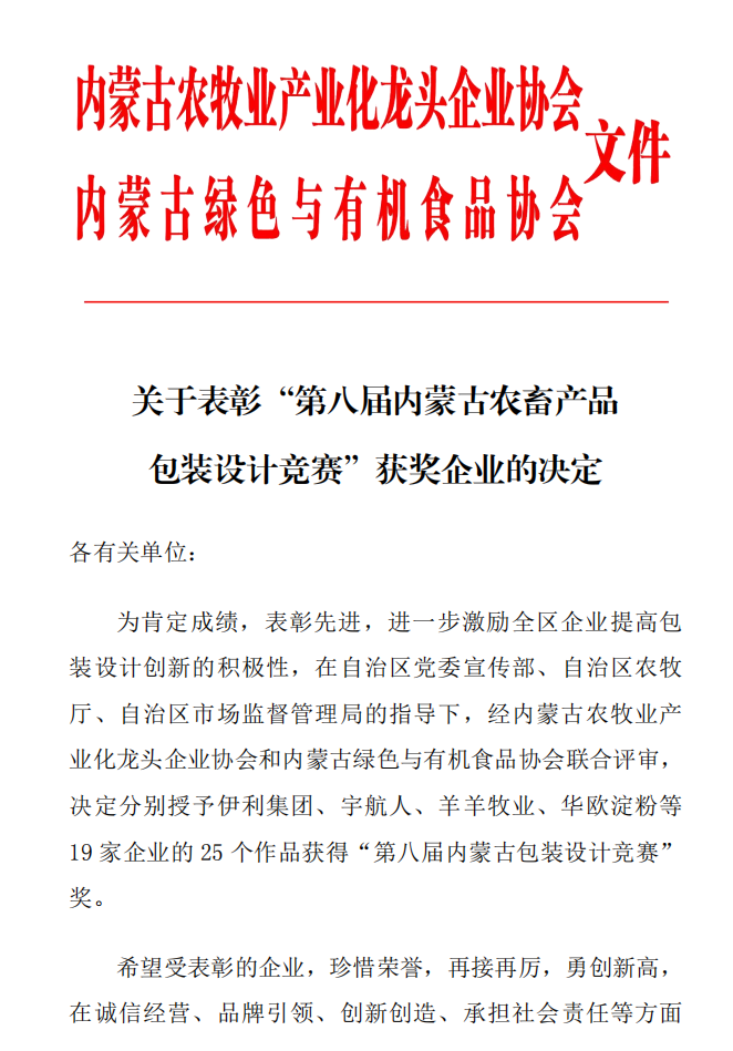 關(guān)于表彰“第八屆內(nèi)蒙古農(nóng)畜產(chǎn)品包裝設(shè)計(jì)競賽”獲獎企業(yè)的決定