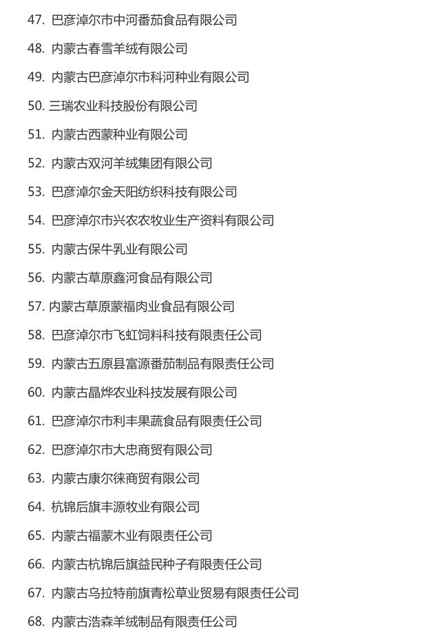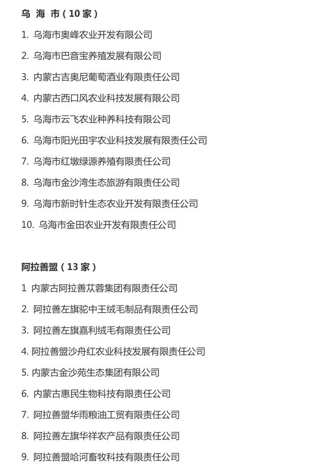 企業(yè)名稱:截止2016年末自治區(qū)級農(nóng)牧業(yè)產(chǎn)業(yè)化 重點龍頭企業(yè)名單​