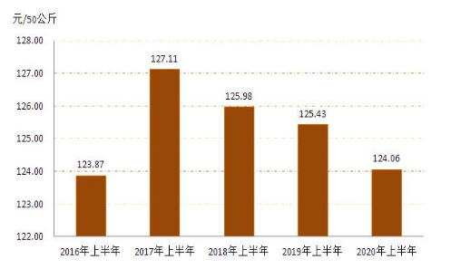 1.小麥:1、2月份春節(jié)假期疊加新冠肺炎疫情,糧企停工停產(chǎn),市場交易趨于平淡,小麥?zhǔn)召弮r格整體穩(wěn)定。3月份之后,隨著新冠肺炎疫情得到有效控制,各地復(fù)工復(fù)產(chǎn)復(fù)學(xué)的大范圍推進,截止12月份全區(qū)小麥每50公斤平均收購價格為124.06元,同比下降1.09%,詳見圖3。(來源:內(nèi)蒙古自治區(qū)發(fā)展和改革委員會)