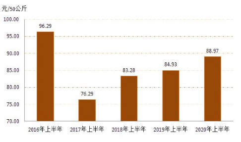 3   20162020年上半年全區(qū)小麥?zhǔn)召弮r格對比圖